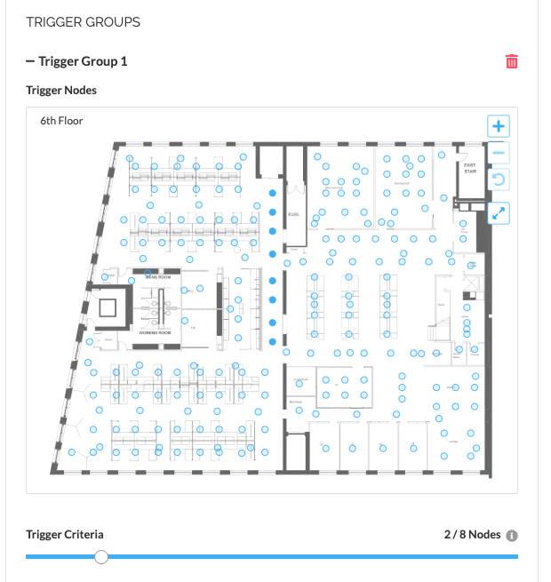 Create at least one Trigger Group by selecting the desired Trigger Nodes (occupancy-sensing) on the map preview