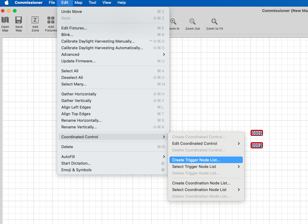- Navigate to Edit > Coordinated Control > Create Trigger Node List