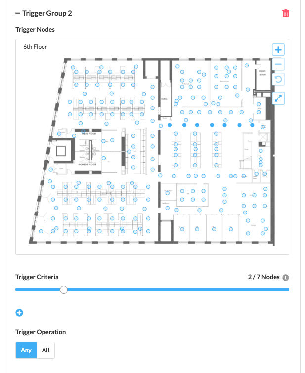 - Activating any Trigger Node in the room will activate the entire room to its active level (80%)